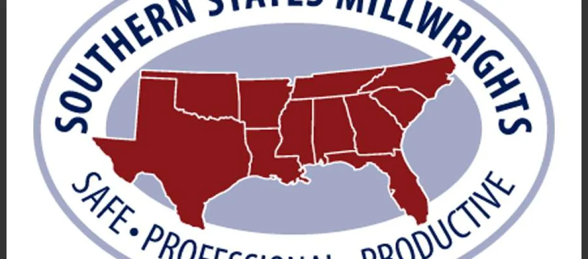 Southern States Millwrights logo with a map of southern U.S. states emphasizing safe, professional, and productive work.