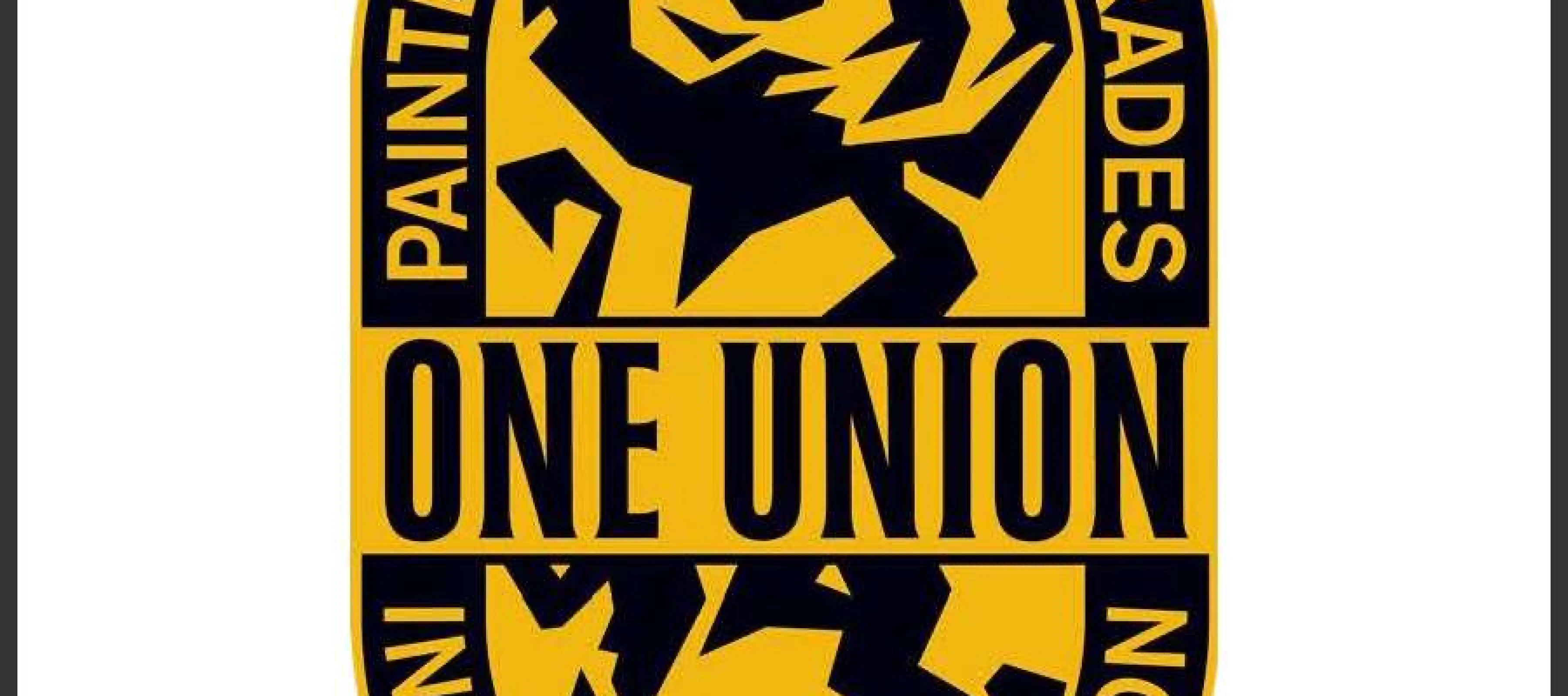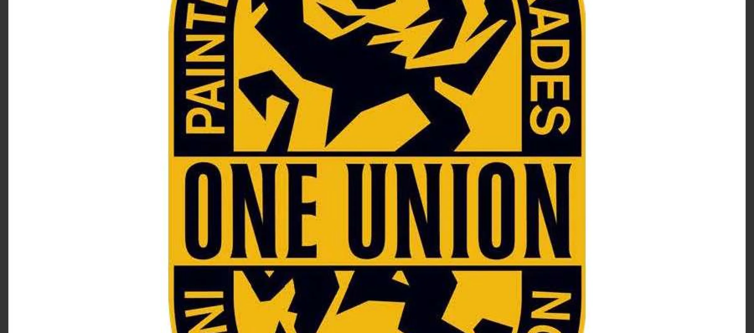 Logo of the United Union of Roofers, Waterproofers & Allied Workers with a strong worker and American flag background.